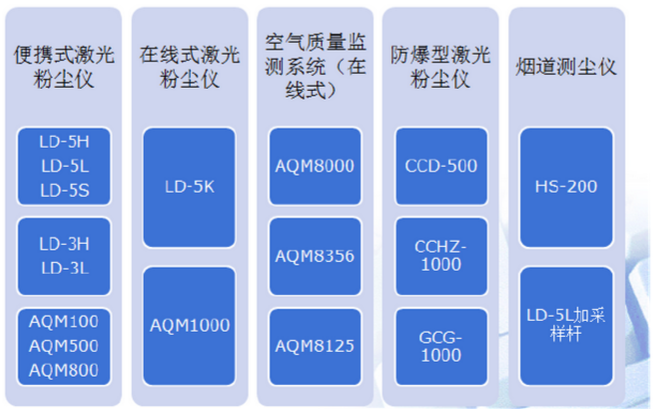 我公司銷售的激光粉塵檢測設備根據其用途不同,可分為便攜式、在線式、防爆型、煙塵管道型以及空氣質量監測系統五類。